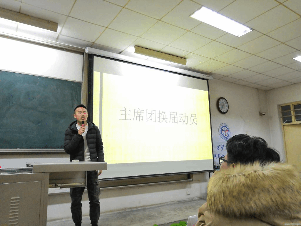 学生会于2018年12月17日19时在教二-202举行主席团换届动员大会,学生会全体成员参加本次会议。