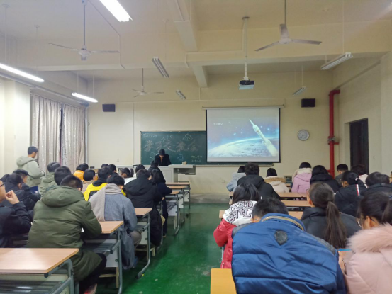 本次会议由科技竞赛部副部长蒋鹏主持。首先,他为大家介绍了中国航天日的由来,中国航天日的历史以及设立中国航天日的意义。中国航天日,是为了纪念中国航天事业成就,发扬中国航天精神而计划设立的,自2016年起,将每年4月24日设立为“中国航天日”。中国航天日的设立不仅能够传承航天精神凝聚中国力量,而且有利于发展创新文化,推动国际合作。接着,蒋鹏向大家介绍世界航天日。从1969年起,人们把每年的4月12日称为“世界航天日”,又称“世界航天节”。最后,蒋鹏展示了中国过去取得的伟大成就:天宫一号与天舟一号的对接、北斗导航系统和中国天眼的成功建立。引发了大家的兴趣并对此展开热烈讨论,大家都一致认为中国航天的发展十分迅速,并为此感到骄傲。至此,本次交流会圆满结束。