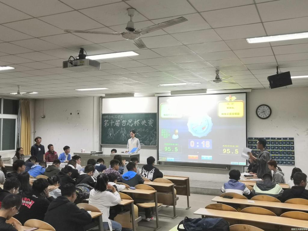 本次比赛由学生会干事延涵冰担任主持。比赛共分为五个环节:开篇立论、盘问环节、驳论环节、双方攻辩环节、自由辩论环节。各支队伍的辩手们默契配合、当仁不让,他们妙语连珠、旁征博引、当仁不让,将整个比赛带入了一个又一个高潮。辩手们沉着、冷静、从容、自信的面对对手们的犀利问题,有条不紊的阐述着自己的观点,充分展现出辩手们严谨的逻辑。在总结陈词环节,双方四辩针对对手逻辑上的漏洞逐一回击,思路清晰,引经据典,才思敏捷。经评委最终判定,选出刘勃、李凯、刘帅池、时浩天、汪美琪、吴若愚、许嘉豪、张婉秋这八位优秀辩手参加第十届“哲思杯”总决赛。至此,此次第十届“哲思杯”材化分赛圆满结束。