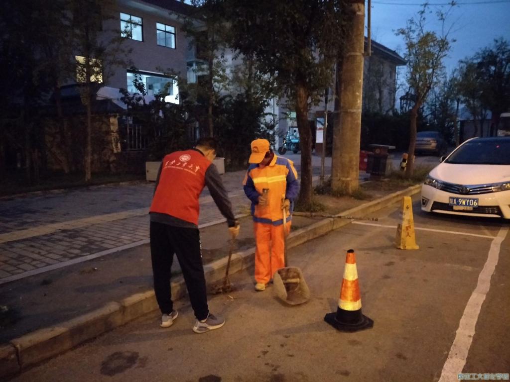 此次活动由青年志愿者协会会长李天宇、副会长田晨曦组织开展。清晨6时,青协成员在学校咖啡厅门口集合完毕后,在会长李天宇的带领下来到西南门外的路旁,展开“慰问环卫工人”志愿活动。志愿者们主动寻找那清晨中忙碌的身影并上前进行亲切的慰问,询问环卫工人们的日常工作和生活状况以及西安市开展垃圾分类活动后对他们工作产生的影响。同时,对他们为城市环境的美丽做出的巨大贡献表示感谢并亲手送上慰问品,以此表达当代大学生对辛勤付出劳动者们的感激之情。最终,本次志愿活动伴随着志愿者们亲身体验清理工作圆满落幕。