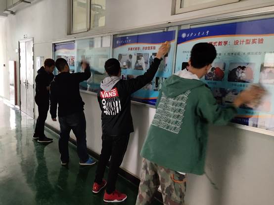 在这次活动中,全体党员不怕脏、不怕累,认真的清理楼道的橱窗和展示牌,这次活动使得楼道环境卫生焕然一新,通过这次的活动,各党员积极参与,努力营造一个干净整洁环境,这是材化学院第二党支部全体党员思想觉悟高度提高的具体表现。