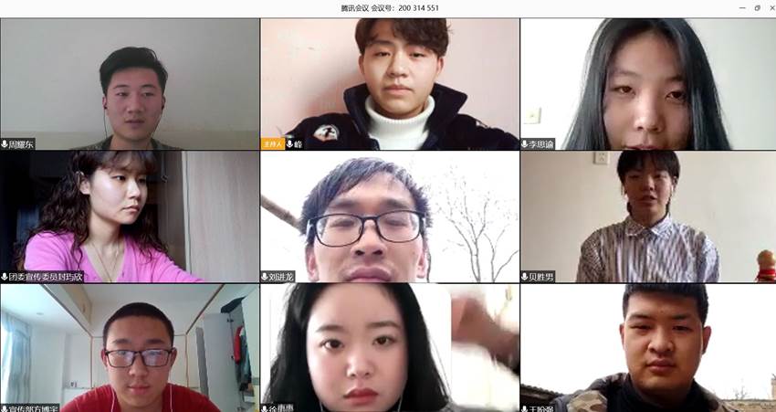 通过本次线上会议的召开,团委干部们充分了解了自己在疫情期间以及本学期开学后的相关任务,同时也增强了各部门之间的联系,为下学期开学的工作打下了坚实的基础。