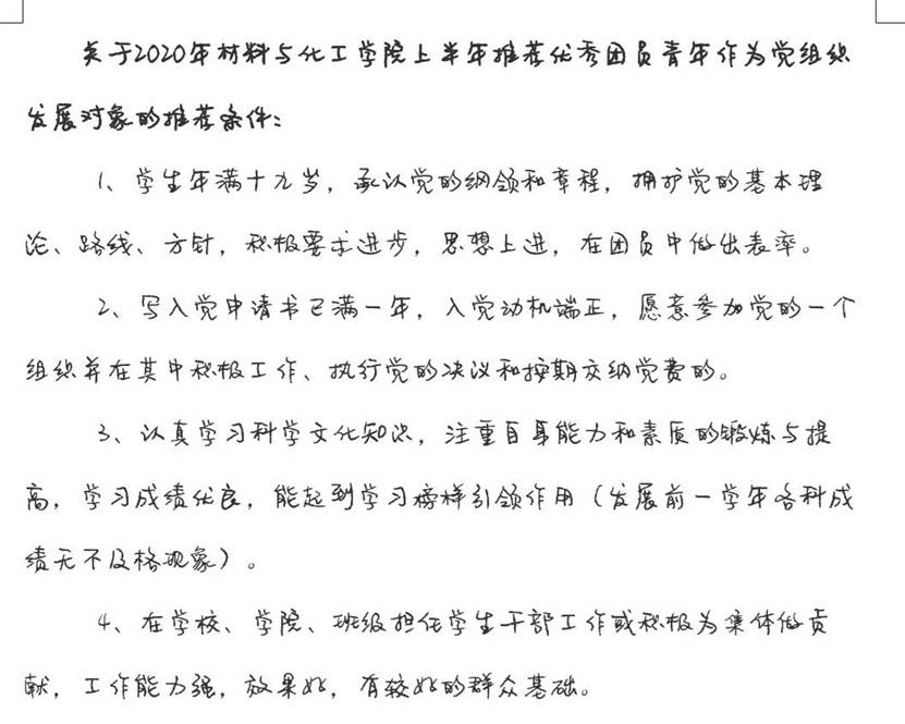 各个团支部积极向党组织推荐优秀青年团员作为党的发展对象,为党组织输送新鲜血液。疫情期间,经学院党委的统筹安排,学院团委负责学院的整体团支部推优线上工作。