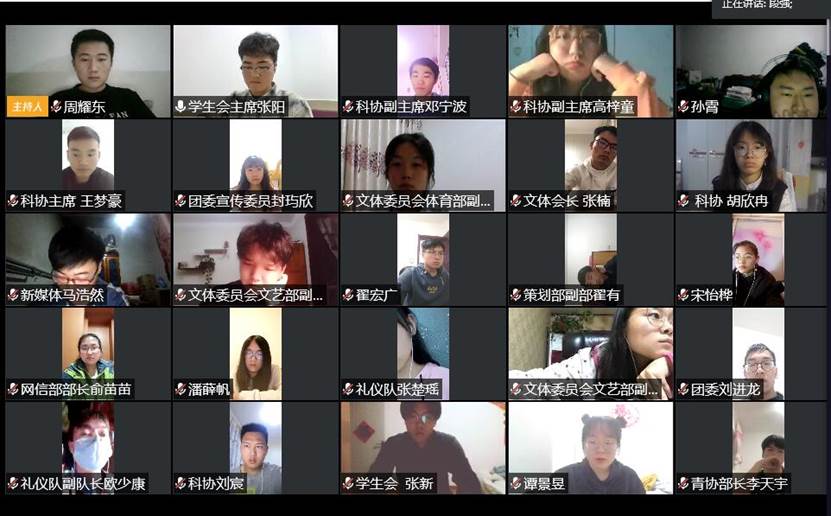 团委书记段强老师、团委副书记乔娜老师、团学组织全体干部参加会议,会议由学院团委副书记乔娜老师主持。会议伊始,学院团委书记段强老师指出即日起快猫