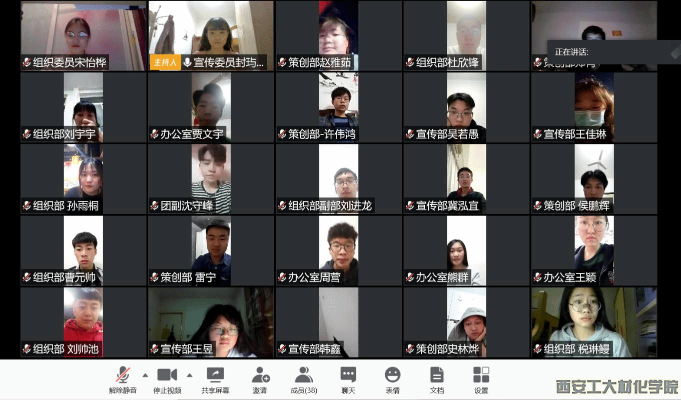 此次例会在宣传委员封玙欣的主持下正式开始。首先,由团委副书记沈守峰对团委后期的工作进行安排,并且强调尽管是线上工作,团委干事也应端正工作态度,明确工作任务,将每次活动尽力做好。紧接着,由组织委员宋怡桦对西工印记出现的问题进行详细的总结及说明,要求大家认真对待每一次的工作。随后,由团委各部门负责人对本部门前半学期所举办的活动进行总结,指出不足之处以及改正措施,并表示会在以后的工作中不断完善。最后,封玙欣讲到团委干部换届将近,希望有意愿的干事积极竞选,将学院团委的优良传统继续发扬传承。至此,本次会议圆满结束。