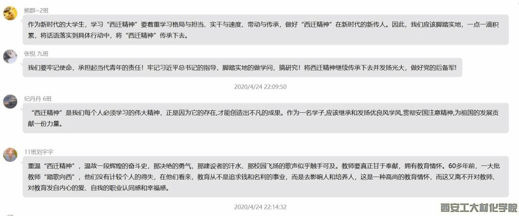 团委于2020年4月24日晚22:00召开“西迁精神”主题教育会,本次会议由团委副书记周耀东主持召开,2019级团支部书记与团委学生干部参加本次会议。