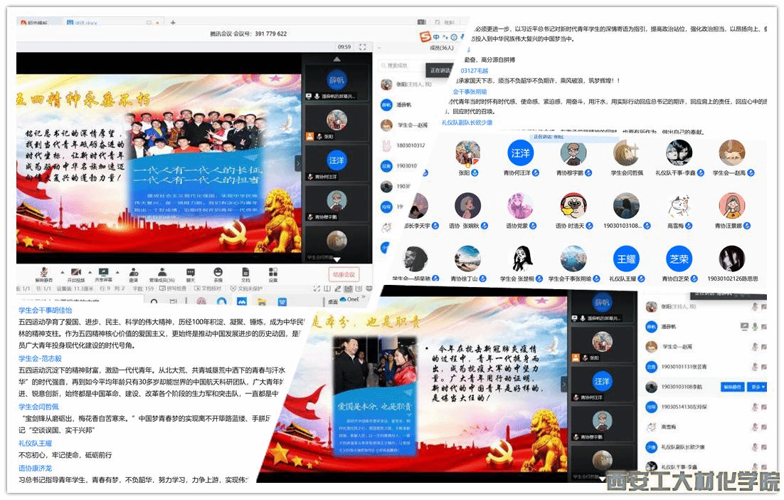 通过此次会议,大家对五四精神有了进一步的了解,深刻领会到新时代青年的责任与使命。在此特殊时期,作为学生更应积极响应国家号召,牢记自身的使命,推动社会主义精神文明建设,成为驱动中华民族加速迈向伟大复兴的蓬勃力量!