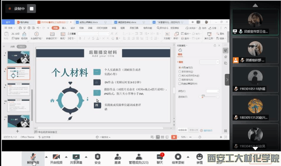 团委副书记乔娜老师、团委全体学生干部及所有参与暑期个人社会实践的同学参加本次培训会。