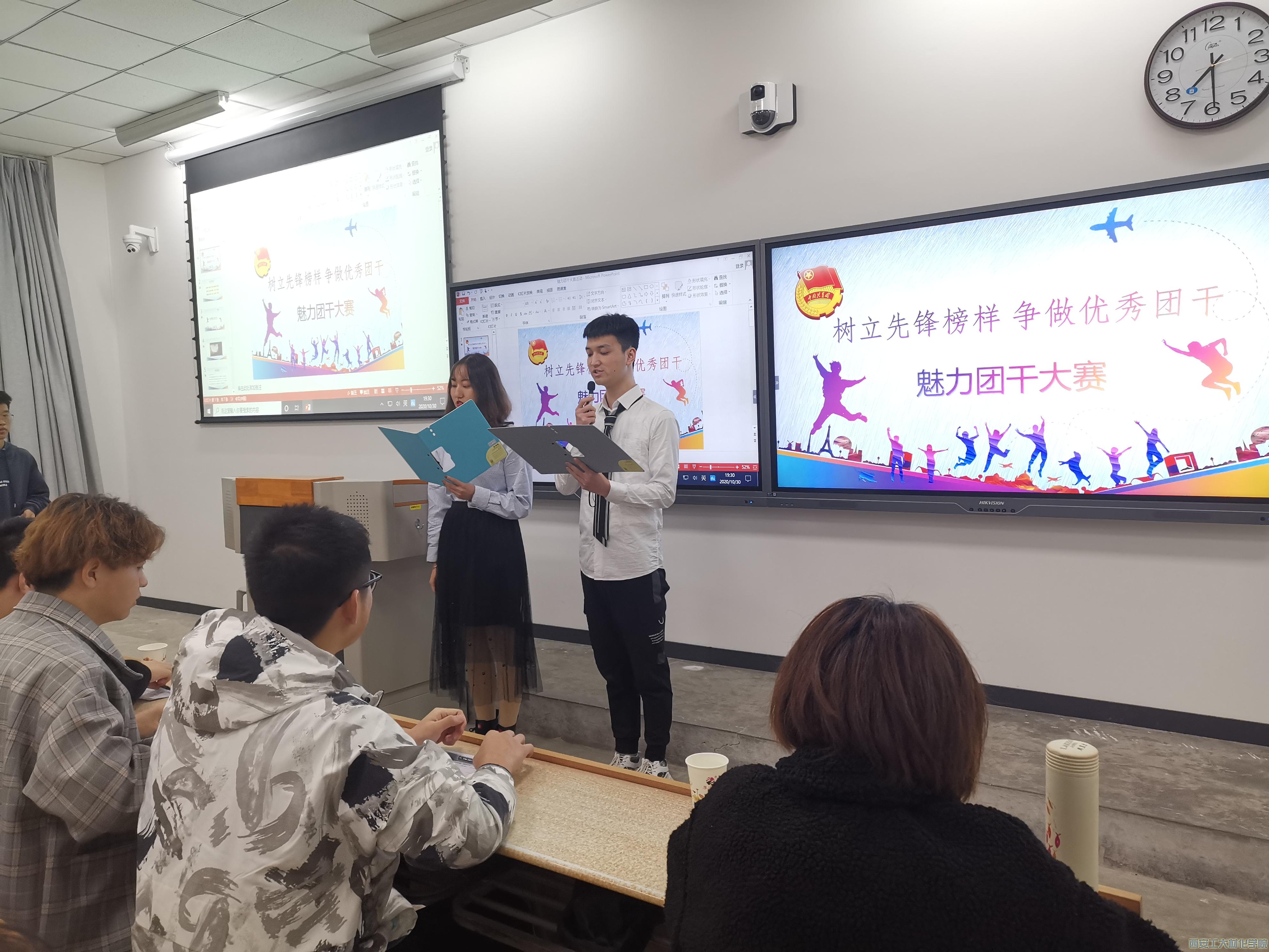团委于2020年10月30日19:30在教2-102举办魅力团干大赛。团委副书记周耀东、沈守峰出席本次大赛,全体参赛选手参加本次比赛。