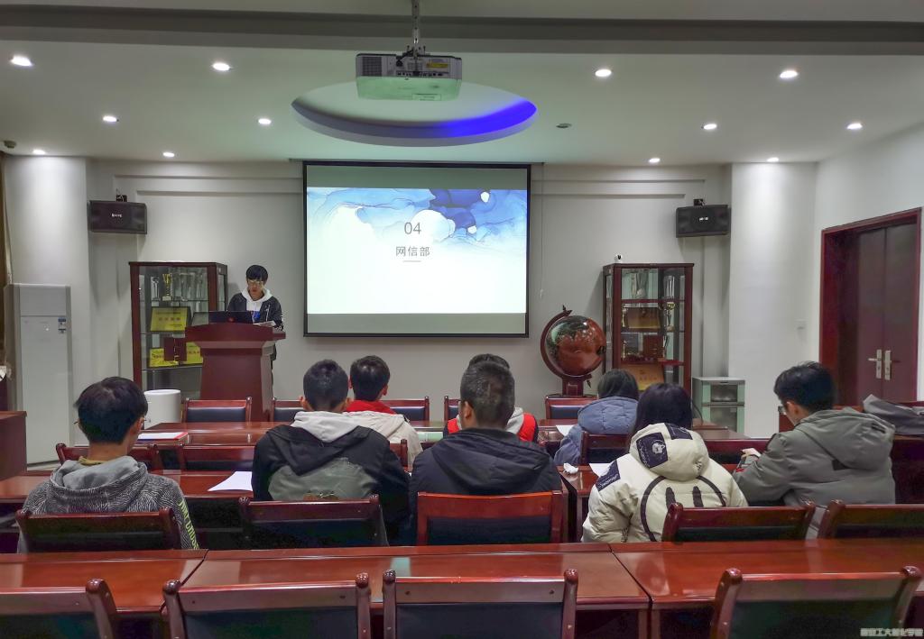 本次例会由网络信息部学生干部刘恩承主持召开,共分为两个部分。会议伊始,策划部学生干部田雅轩对本月结束的“幻海启程,梦想领航”第二届PPT制作大赛做出总结,同时反思在比赛中出现的问题。其次信息宣传部学生干部张星对本部门专栏推文任务做出安排和分配,此外还有科技竞赛部学生干部张浩晗对PPT大赛颁奖典礼中出现的问题进行总结与反思,网络信息部学生干部吴泽丰也提出了本月学院官方微信公众平台运营维护过程中出现的问题,并同时提出解决方案。最后,科协主席王梦豪指出在近期工作中,部分团学干部存在失职现象,并表示在未来工作中,希望各部门都能反思自己的问题,加强部门间的联系,努力把工作做好。至此,此次学习会圆满结束。