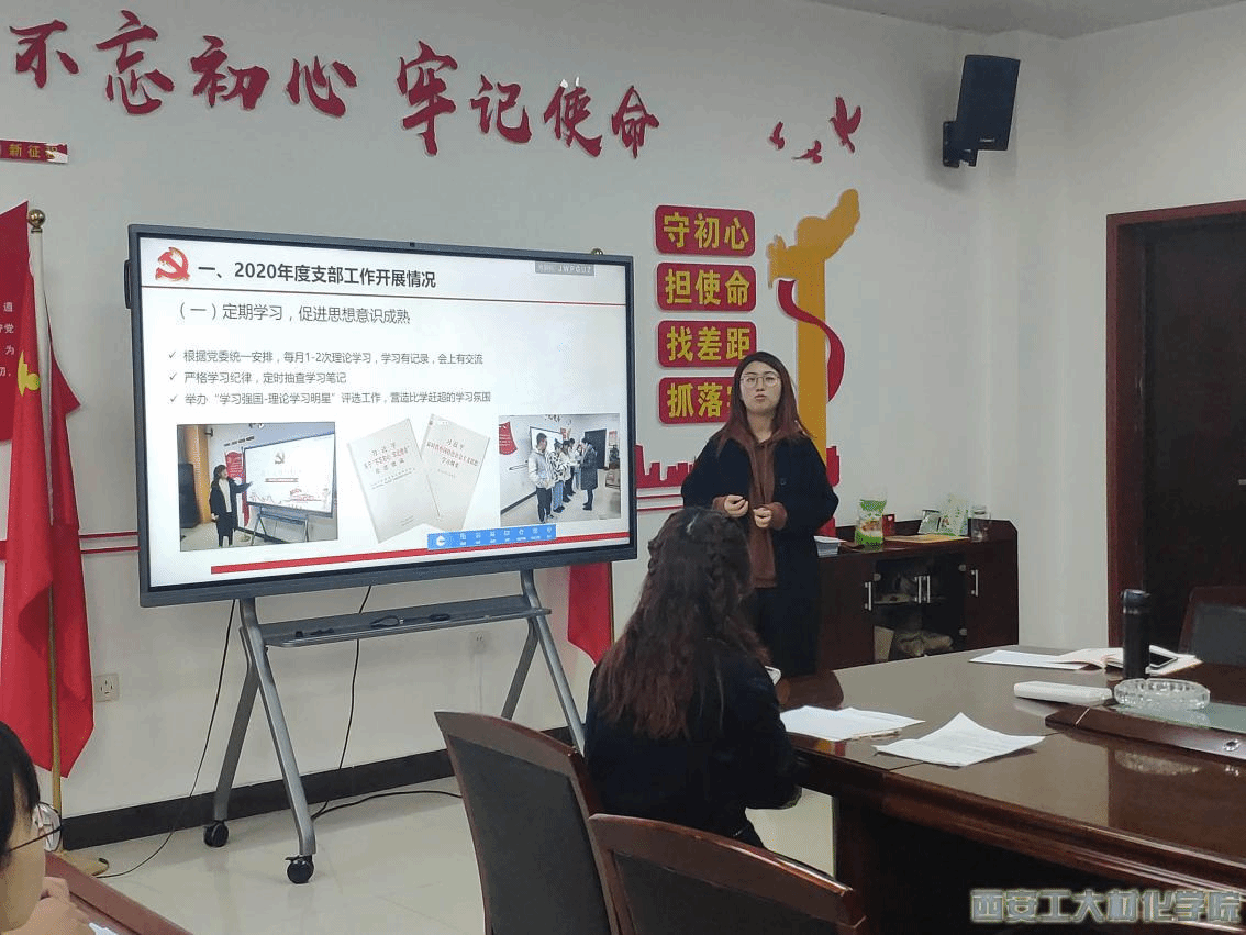 首先,封玙欣传达了会议精神,并简要介绍了会议流程,支部书记徐慧子做述职报告,梳理了党支部这一年组织的各类主题党日及理论学习活动;并对上一年支部所存在的问题整改情况作了汇报。随后,与会党员纷纷发言,结合树牢“四个意识”、坚定“四个自信”、坚决做到“两个维护”以及担当作为、生活、学习等方面进行批评与自我批评,深刻的剖析自身的不足和存在的问题。最后,与会正式党员进行民主评议。