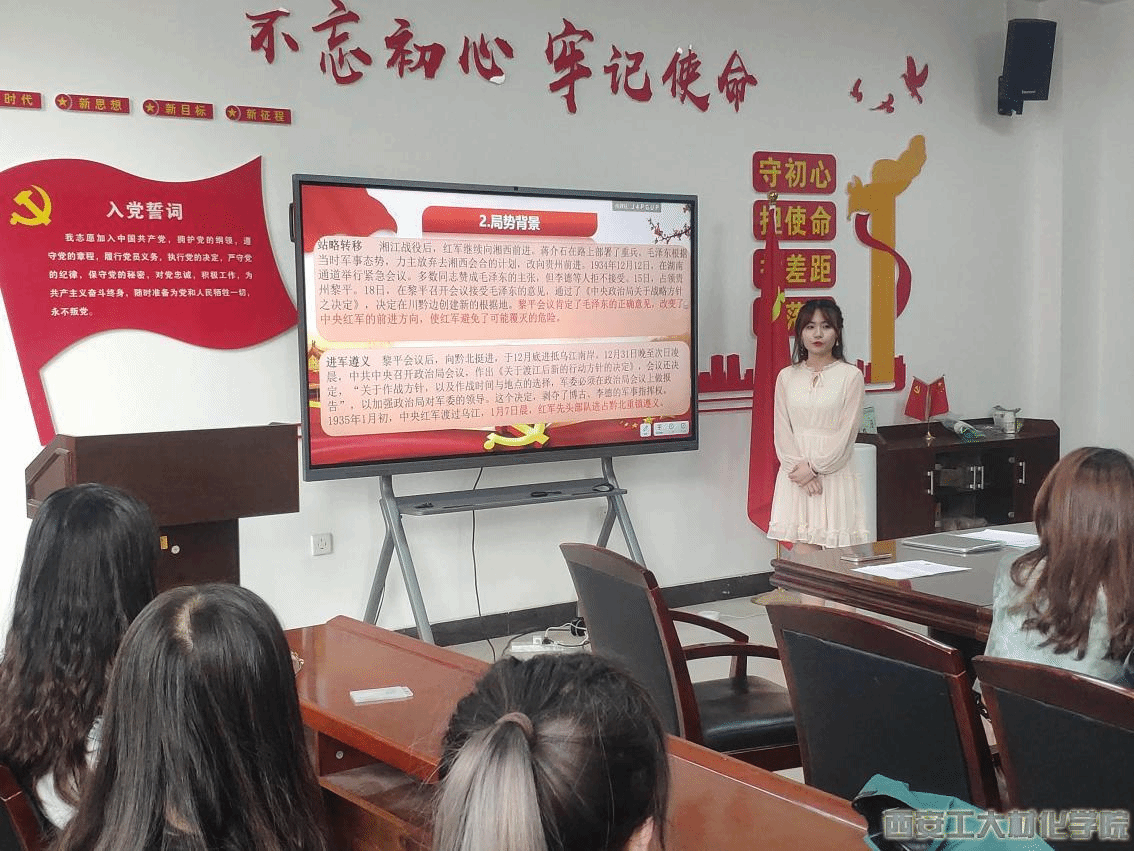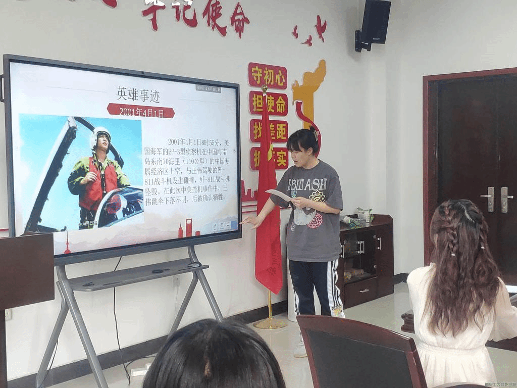首先,组织委员贝胜男讲述了关于飞行员王伟的事迹,在执行这次任务时,王伟坚毅果敢,沉着冷静,英勇顽强,用生命谱写了一曲爱国主义和革命英雄主义的壮丽凯歌,中国人民将永远期待王伟的返航。接着支部副书记封玙欣同志介绍的遵义会议的精神与时代影响,它在极端危险的时刻,挽救了党和红军,是中国共产党历史上一个生死攸关的转折点,标志着中国共产党从幼年达到成熟,我们要从遵义会议历史中找到启迪、从遵义会议精神中找到力量,进一步丰富遵义会议精神的时代内涵,不断巩固全党全国人民团结奋斗的共同思想基础。至此本次主题党日活动圆满结束。