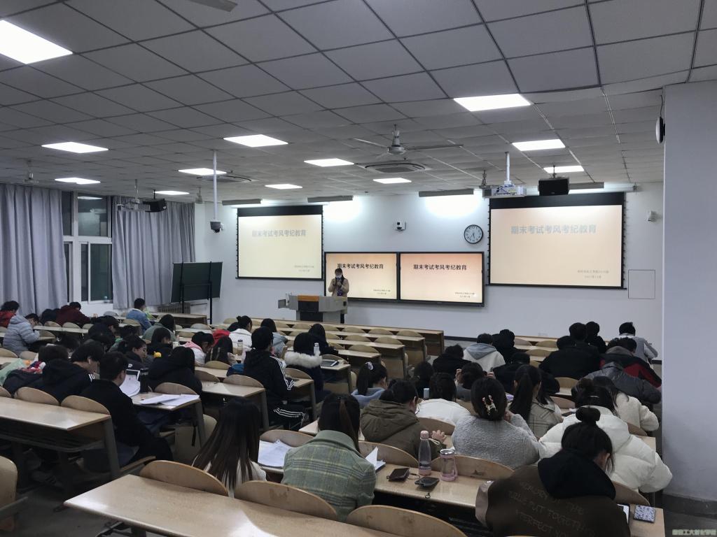 2018级辅导员张瑞红在教2-105召开2018级期末“严肃考风,诚信考试”教育大会,2018级全体学生参与了本次教育大会。