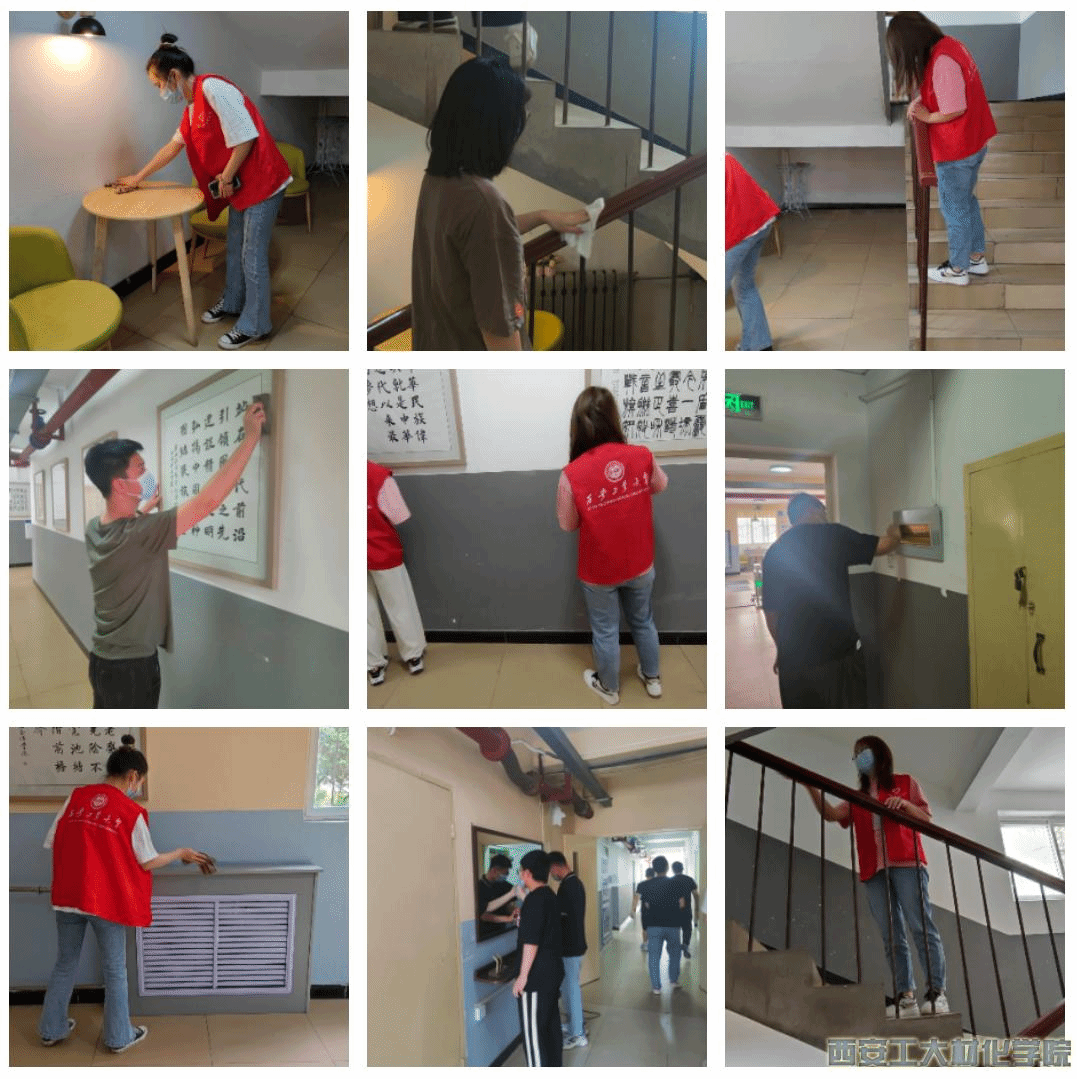 活动开始,青年志愿者协会对所有参加活动的学生志愿者进行分组并组织签到,进入八、九公寓后与宿管阿姨进行了深入交流,了解了她们的工作日常。同时,按照规定的卫生要求仔细擦拭楼道里的沙发、楼梯栏杆及卫生死角。志愿者在本次志愿服务活动中发扬了不怕苦不怕累的志愿精神,与宿管阿姨的配合展现了大家积极向上、乐于助人的精神风貌。