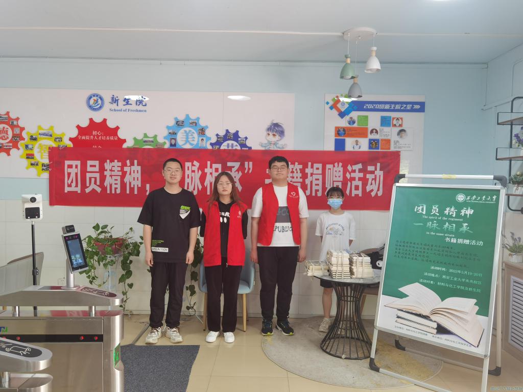 青年志愿者协会于2022年5月19日至20日中午在未央校区学生1公寓举办“团员精神,一脉相承”书籍捐赠活动。材化学院与新生院共120名学生参与本次活动。