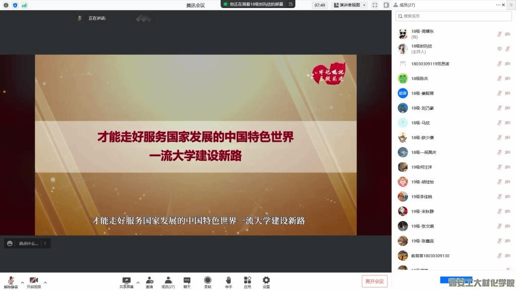 学生第四党支部通过腾讯会议召开线上主题党日活动。本次党日活动主题为“牢记嘱托,勇毅前进”,支部全体成员参加本次活动。