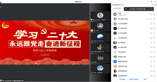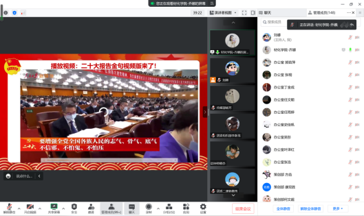 团委开展“学习二十大 永远跟党走 奋进新征程”主题团课,团学组织全体人员参加学习,团课由团委书记乔娜主讲。