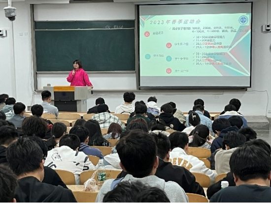 动员会上徐慧子从运动会背景和意义、竞赛项目、各比赛项目要求及激励鼓励政策等四方面进行了讲解。徐慧子强调,学生运动会不但能加强班级之间的团结友谊,丰富学生的业余文化,还能提升身心健康,丰富校园文化氛围,希望大家能够积极报名,把握好这次机会,共同创造属于集体的回忆。