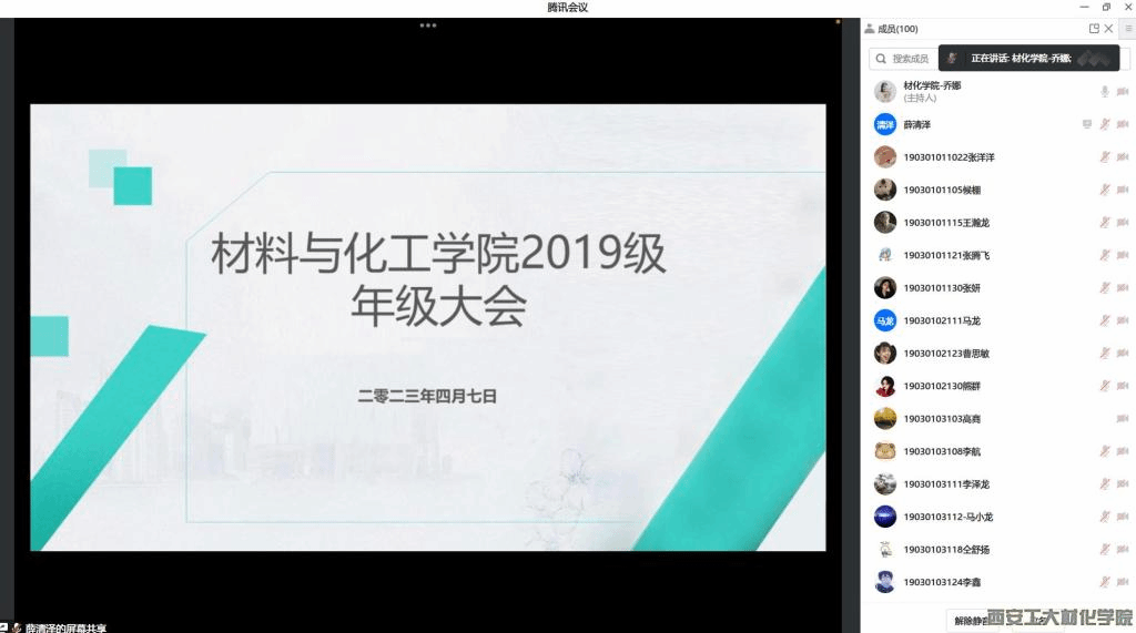 2019级于4月7日晚上7时召开线上年级大会,2019级辅导员乔娜主持会议,2019级学生参加会议。