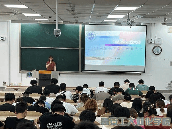 于教1-102面向20级全体学生开展2023年暑假安全教育大会。会议由2020级辅导员徐慧子主持,20级1-6、14、15班全体学生参加本次会议。