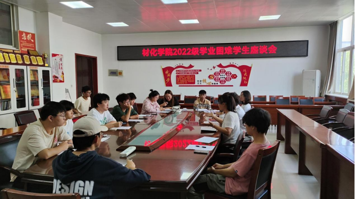 2022级在工3-410召开“师生携手 勇毅前行”学业困难学生座谈会,2022级辅导员张瑞红老师和全体学业困难学生参加会议。