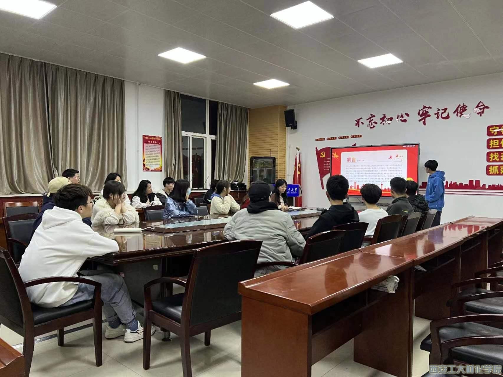 会议开始,学生干部吴继超介绍了本次会议的三个部分,分别为“继往开来的大会,迈向复习的蓝图”、“新时代的伟大成就带给我们什么?”以及“思想的伟力,开辟新境界”。紧接着,学生干部吴纪超向全体成员介绍了大会的主要内容及主要思想。讲解的过程中,参会成员听得认真仔细,同时做好了笔记记录,以此加深对本次会议内容的理解。大家纷纷表示,本次报告内容中,无不透射着思想的魅力,作为当代青年的我们,当有远大抱负,踔厉奋发,为祖国建设贡献自己的青春力量。至此,本次会议圆满结束。
