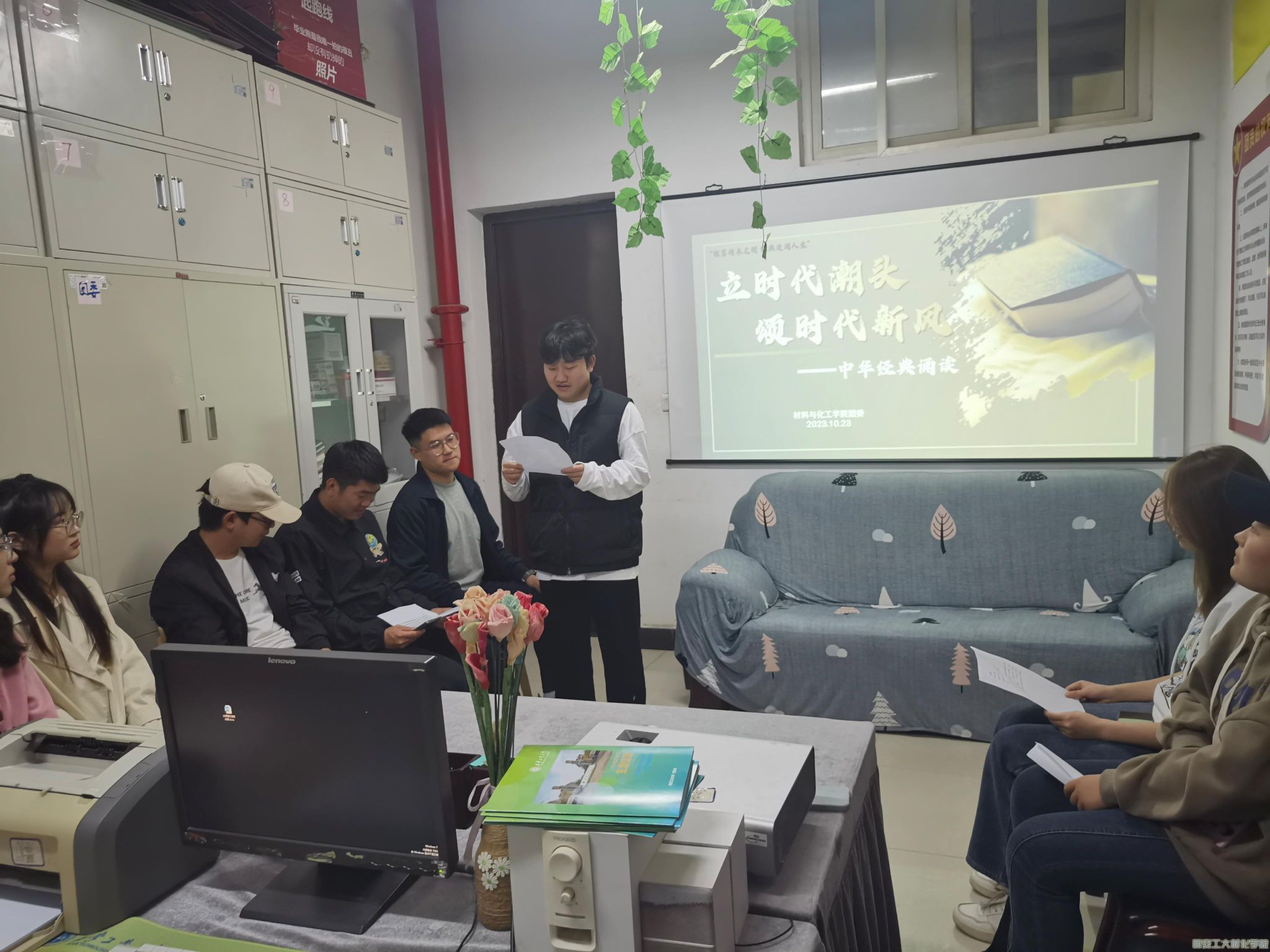 于2023年10月23日,在工三-413举办“立时代潮头,颂时代新风”中华经典诵读活动。本次活动由学生干部祁心雨主持,20余名学生代表参与活动。