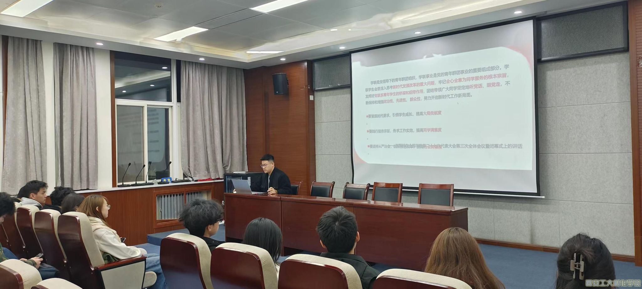 会议伊始,张桐结合本学期2个月开展工作的整体情况向全体学生做汇报,并从思想理论学习、组织建设、校园文化活动等方面公布各部门的成果。学生干部袁佳蕾结合目前的工作指出了存在的问题,从例会制度、思想学习、通讯稿撰写、照片拍摄、视频制作以及举办活动的成效进行问题分析,对出现问题的部门要求限期整改,加强部门建设和有效运营。其次,张桐带领学生会全体成员学习《关于学联学生会工作人员改进作风服务同学的若干规定》及积极践行“我为同学做实事”等四个方面,强调了“我们要从同学中来,到同学中去”,希望我们能够多为同学做实事,加强了同学们的责任感。紧接着,张桐就杜绝组织内部“官僚主义”,加强学生会的工作例会纪律,加深理论学习会在青年培育、思想引领等方面的重要作用做出要求。全体参会人员深感认同。会议最后,张桐对全体成员做出展望:希望在本学期后续的工作大家保持良好的状态投入工作中,尽心服务同学,多为同学们做实事。