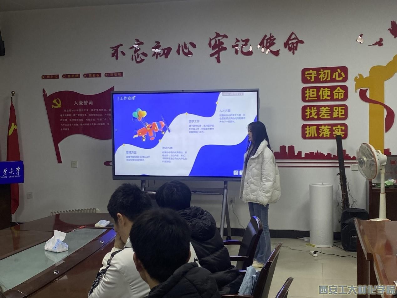 团委于2024年2月28日晚在工3-410召开新学期团学工作会议,团委书记徐慧子以及2024届主要团学干部参与本次会议,会上还对新学期各学生组织工作开展进行了研讨。