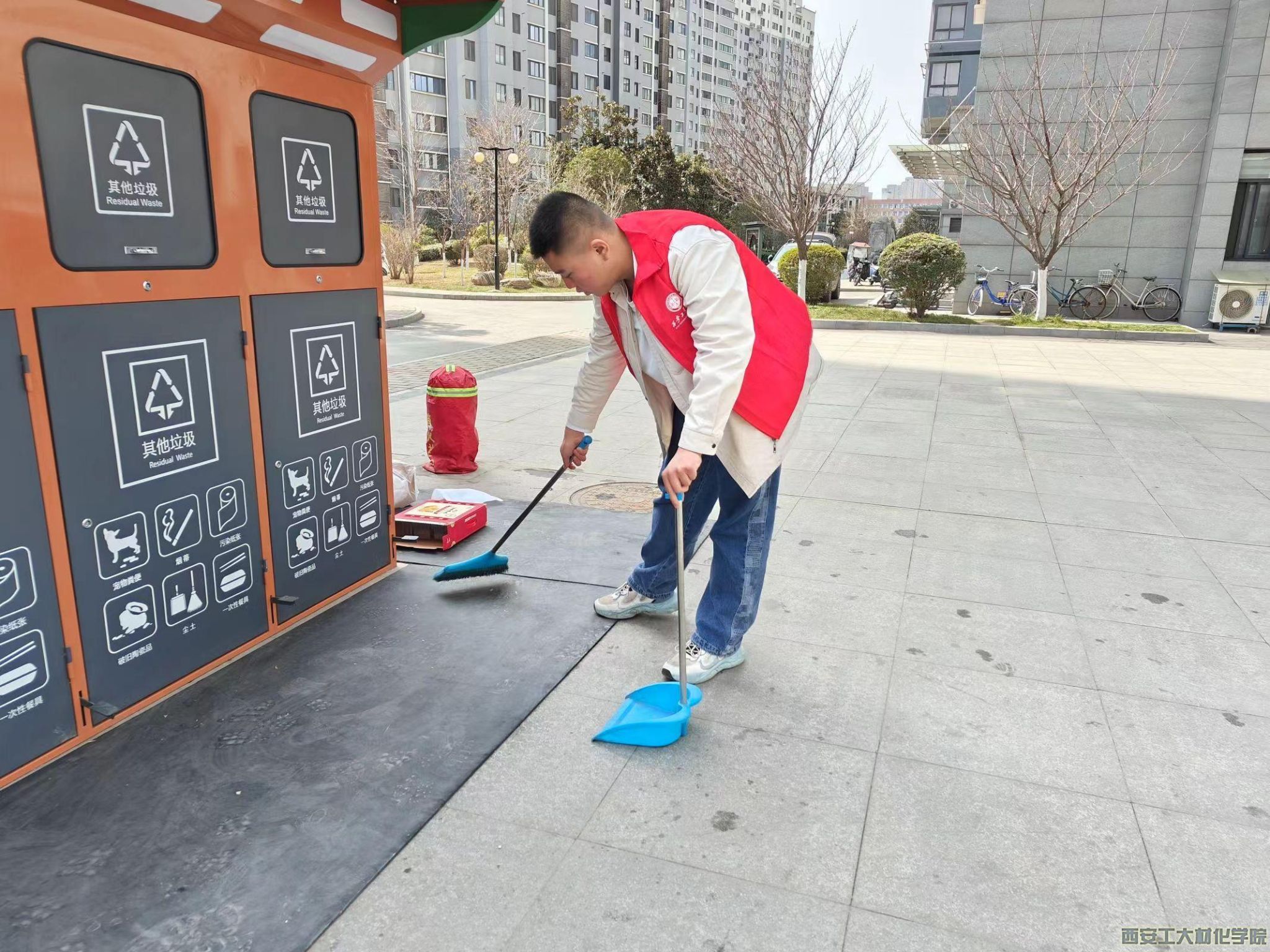 3月5日中午,学生干部邵高杰在西工新苑广场组织参加人员进行签到并做好人员分派。志愿者们带好卫生工具,在社区工作人员的协助下,对社区老人活动中心进行卫生打扫。志愿者们对地面上的灰尘和污渍进行清理,并且擦拭了活动室的门窗。3月6日,志愿者们对整个社区的卫生进行了全面打扫:拾取草坪和道路上的垃圾、烟头,对垃圾箱进行清洁。两天活动中,通过志愿者们的打扫,社区变得更加整洁。活动结束后,志愿者们回到集合地点合照留念。至此,本次活动圆满结束。