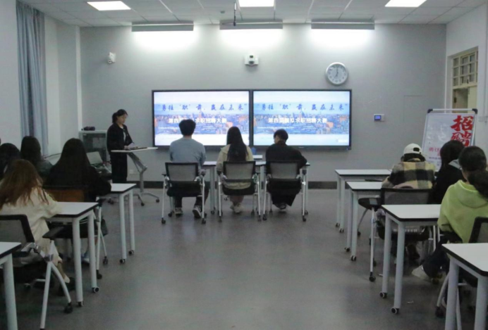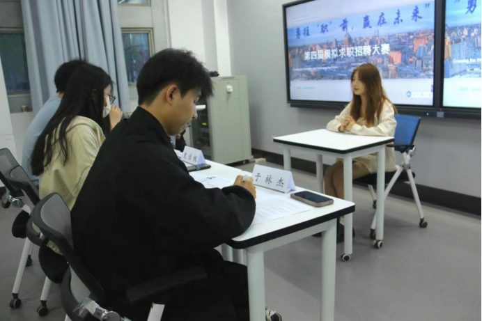 社交与礼仪协会于教3-111举办“勇往‘职’前,赢在未来”第四届模拟求职大赛。学院30余名学生参加。