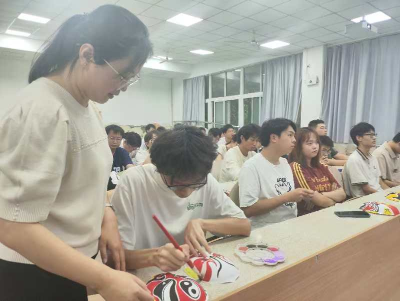 活动伊始,主持人董俊杰简要介绍了京剧的历史地位和全球文化价值,激发了大家的参与热情。随后,电影《梅兰芳》的放映将学生们引领至梅兰芳大师的艺术殿堂,让他们在光影交错间深刻体会到京剧的独特魅力。观影结束后,主持人巧妙地引导大家思考京剧这一古老艺术形式与现代社会的紧密联系,并诚邀数名学生分享观影心得。接着,2023级辅导员乔娜老师向大家展示了京剧在当代社会的崭新发展面貌,其中包括城市运动会吉祥物设计中融入的京剧元素,以及《神女劈观》等传统文化创新案例的精彩分析,进一步拓宽了大家对京剧的认知视野。最后,乔老师现场示范并讲解绘制技法,大家亲手绘制京剧脸谱。