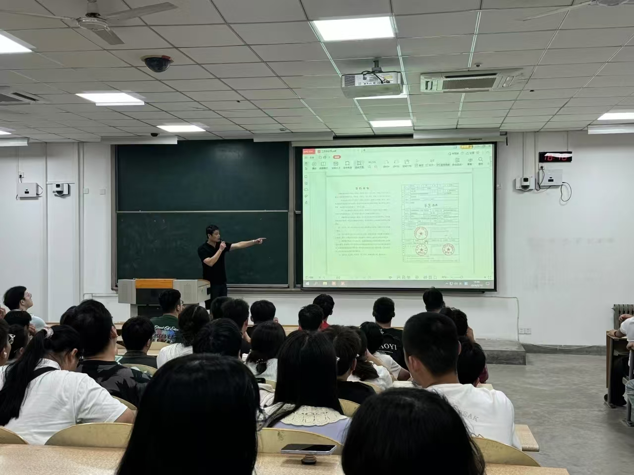 于教3-215召开2025届毕业生就业指导大会。毕业班辅导员段强及全体年级学生参会。