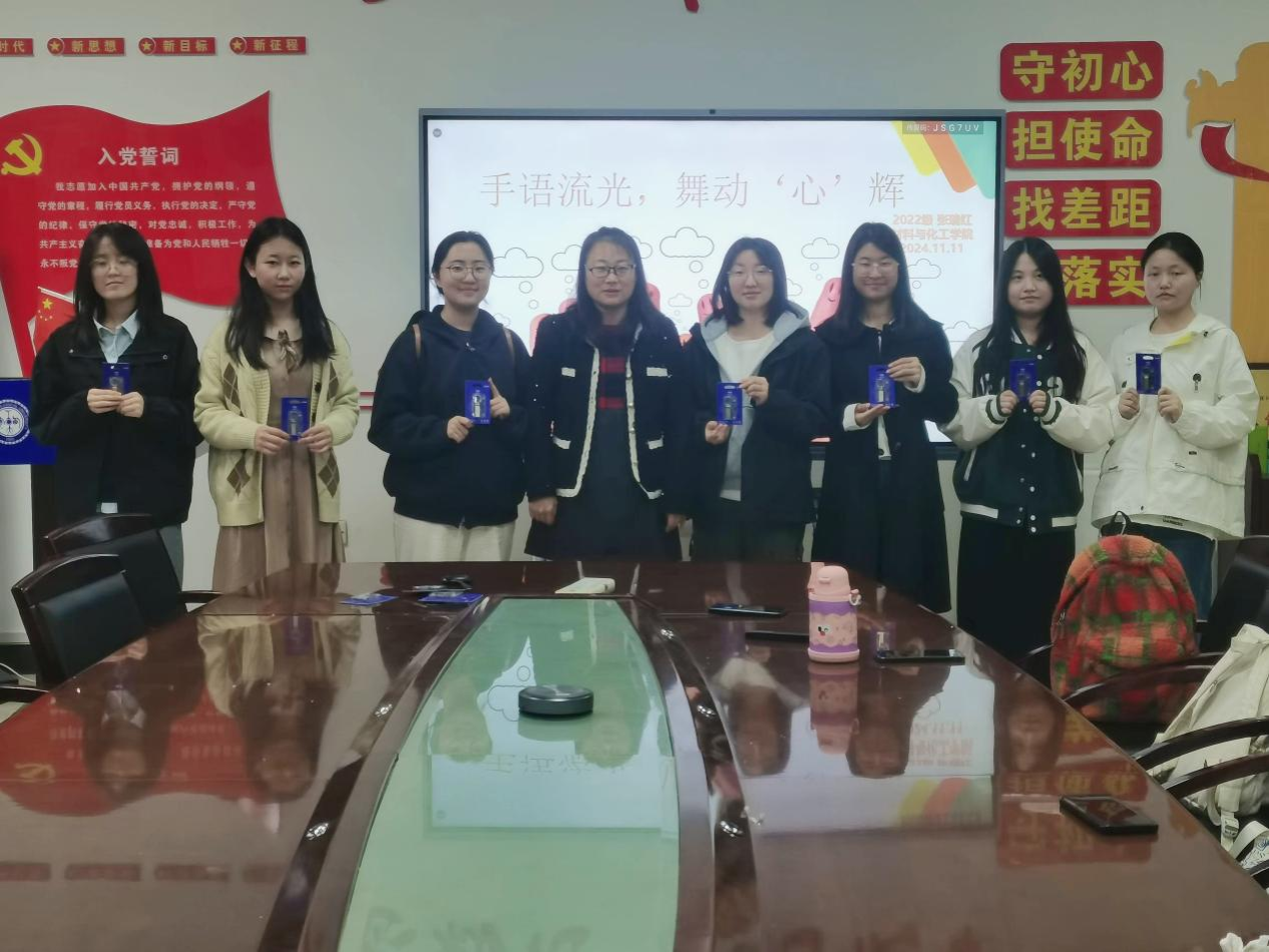 大学生心理健康手语操大赛中取得的优异成绩,2024年11月11日下午,材化学院在工3-410召开表彰大会,本次会议由指导老师张瑞红主持,代表队13名同学参加。