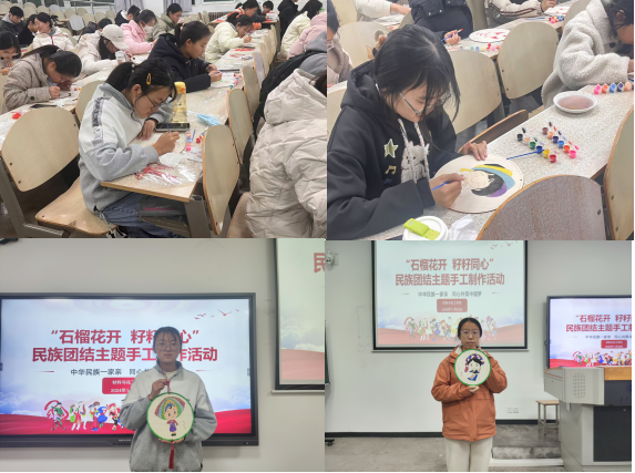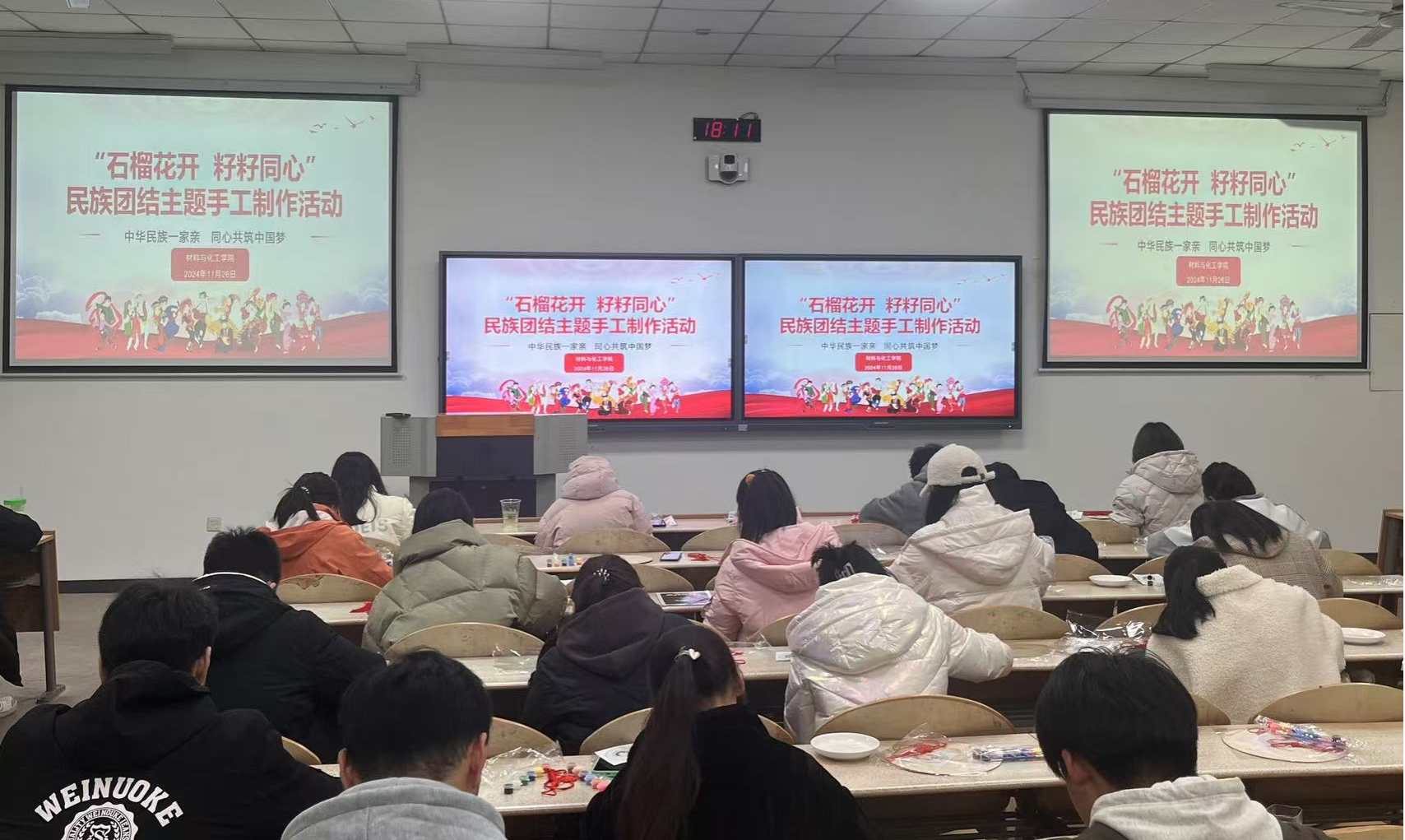 于2024年11月26日于教1-201教室举办了“石榴花开 籽籽同心”民族团结主题手工制作活动。此次活动吸引了学院各民族学生的广泛参与。
