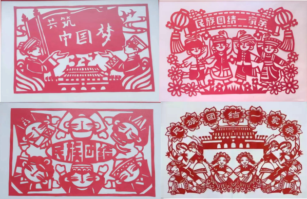 活动现场,大家学习剪纸艺术,以“民族团结”为主题,一把剪刀、一张红纸、一双双巧手让剪纸在指尖上“绽放”。大家沉浸在快乐的剪纸活动中,时而刻刀上场,时而剪刀在红纸中飞舞,大家积极动手实践,交流剪纸技巧,经过两个多小时的精剪细刻,一幅幅主题鲜明、栩栩如生的作品被生动形象地呈现出来,表达出中华民族一家亲、同心共筑中国梦的美好心愿。