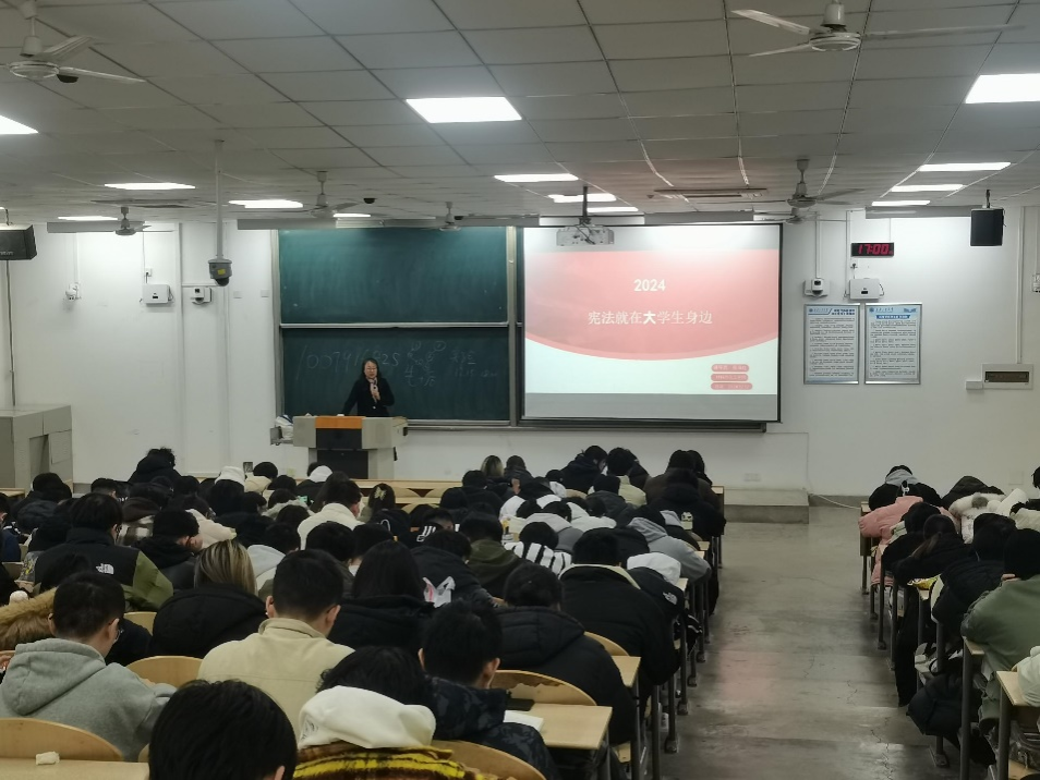 为进一步增强学生法律意识,引导学生深入学习宪法,提升法治素养,让宪法精神在校园内生根发芽,2024年12月12日下午,快猫