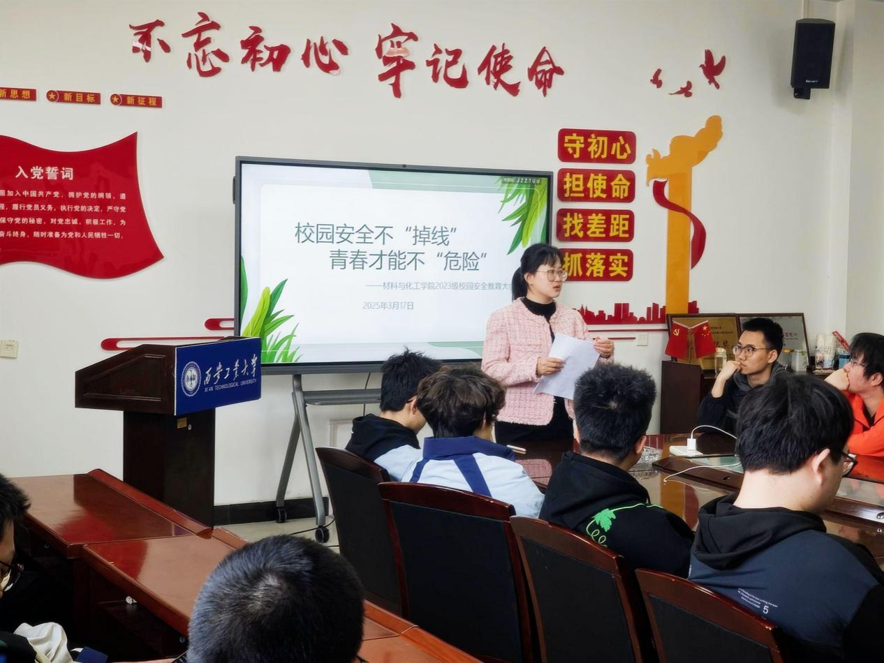 2023级在工3-410召开了校园安全主题教育大会。此次会议由2023级辅导员乔娜主持,2023级部分学生参加。