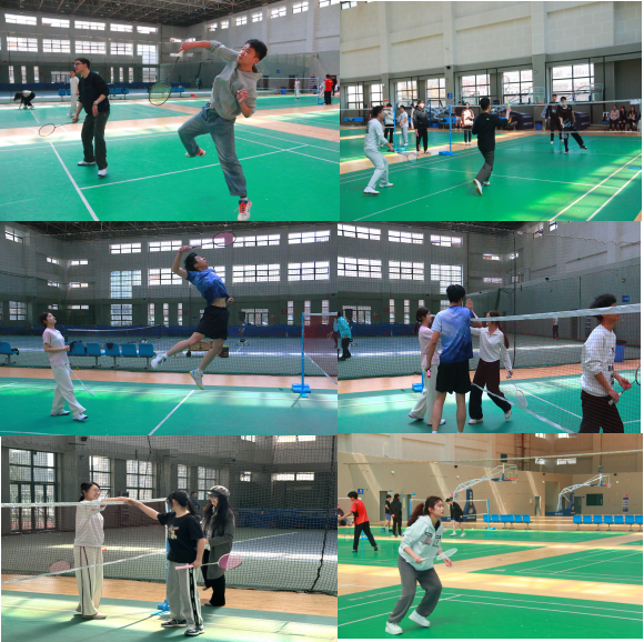 比赛涵盖男子单打、女子单打、男子双打和女子双打四个项目。开幕式上,学院团委副书记乔娜鼓励同学们赛出风格、赛出水平,以饱满的精神状态为学院争光,为校庆献礼。随着一声清脆的哨响,比赛正式拉开帷幕。选手们迅速进入状态,高远球、扣杀、吊球等精湛球技接连上演。在男子单打赛场上,选手们凭借敏捷的身手和出色的爆发力,展开激烈角逐,一次次精彩的救球和进攻,赢得现场观众的阵阵喝彩。女子单打赛场同样精彩纷呈,女选手们灵活应对,用细腻的技术和顽强的斗志诠释着对羽毛球运动的热爱。双打比赛中,搭档之间默契配合,相互鼓励,展现出良好的团队协作精神。