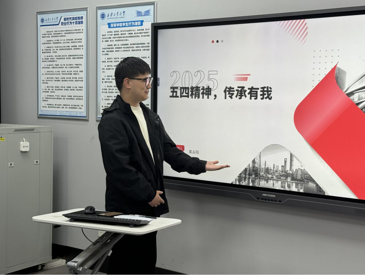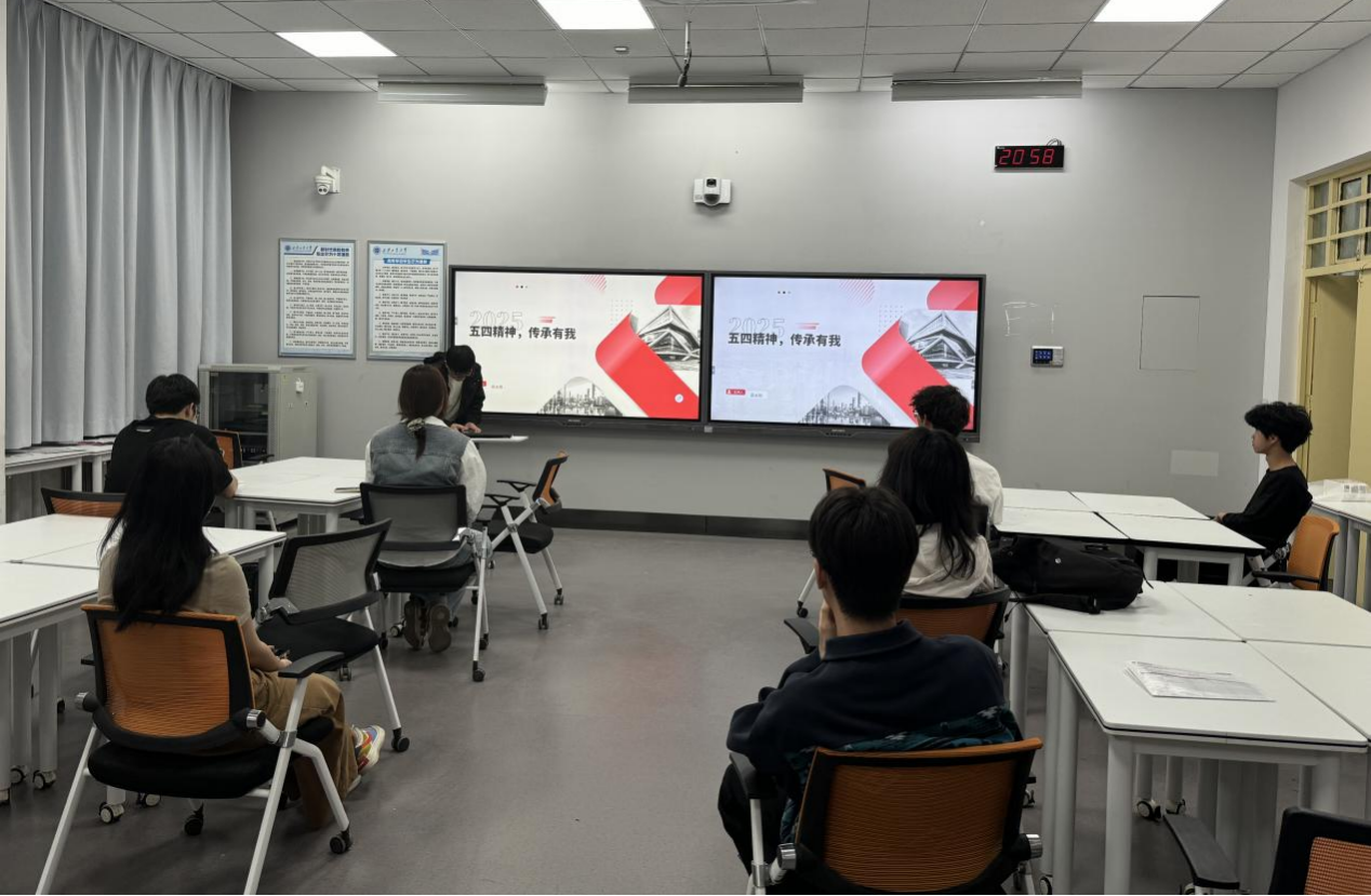 在专题学习环节,与会人员共同观看了五四运动历史纪录片,并围绕“新媒体时代如何传承五四精神”展开热烈讨论。学生干部卯云潇分享道:“作为新媒体工作者,我们要善于运用短视频、图文推送等形式,将五四精神融入青年喜闻乐见的内容创作中,让红色基因在网络空间焕发新生。