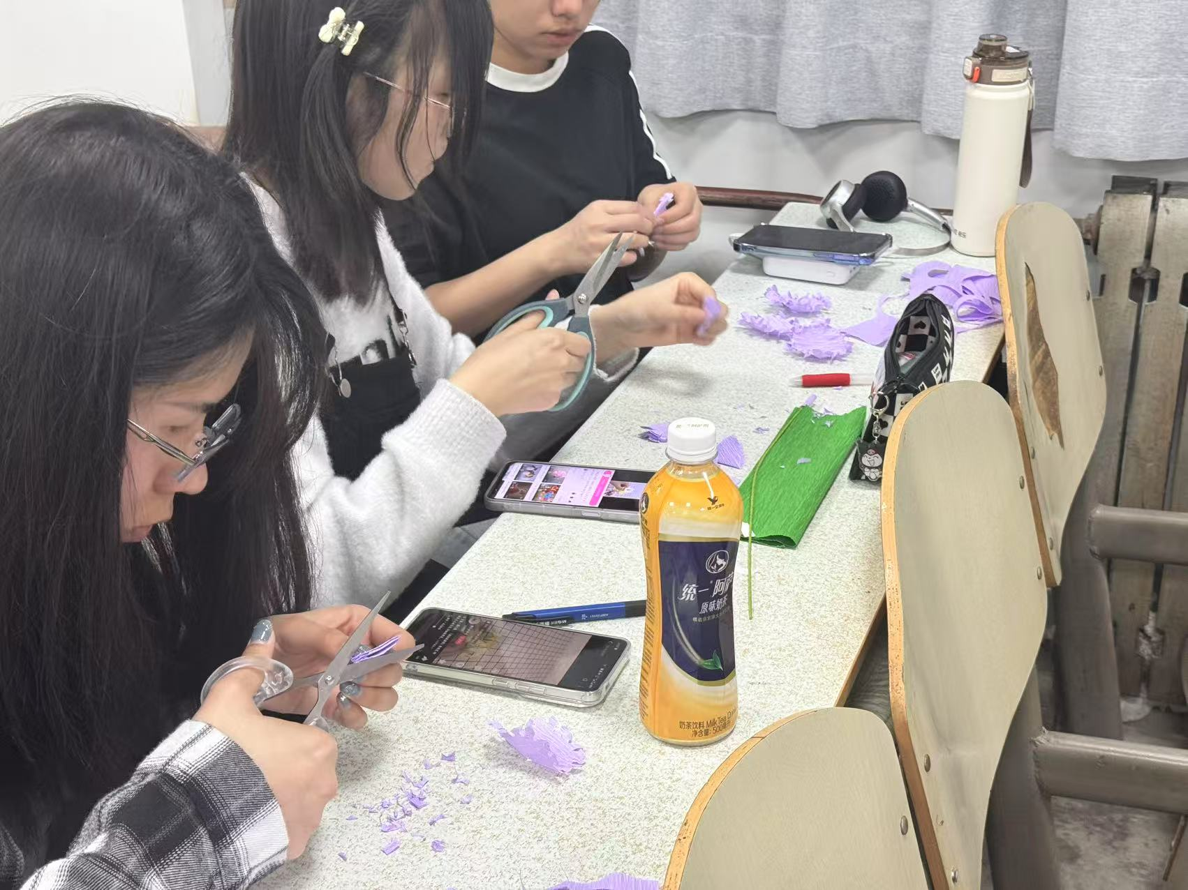 举办“以花传情,献礼校庆”DIY纸花制作活动。40余名学生齐聚一堂,以纸为媒、以花寄情,用创意与巧思编织对母校的深情祝福。