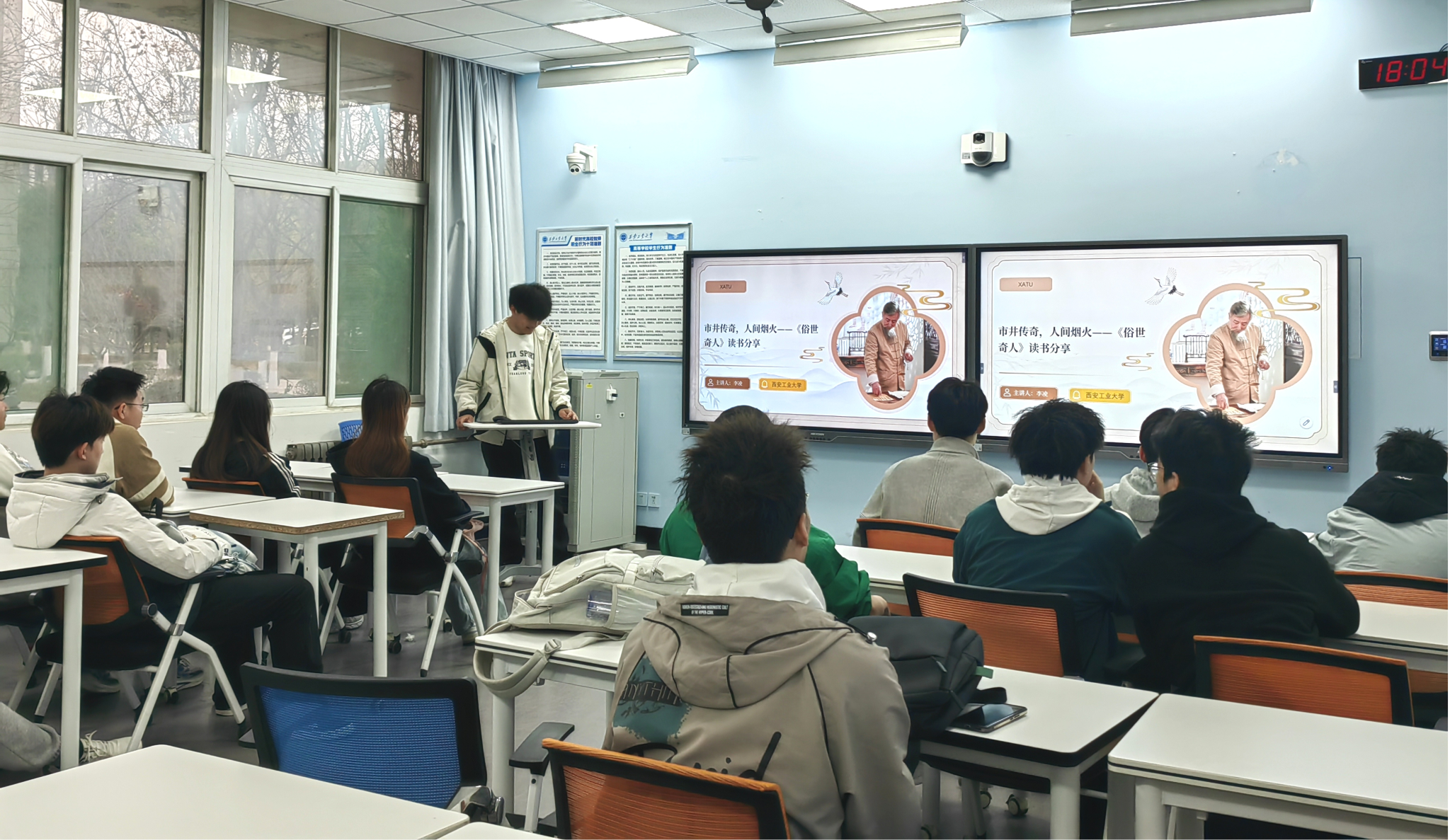 分享会上,学生们围绕书中“刷子李”“泥人张”“苏七块”等经典人物展开热烈讨论。有的从“工匠精神”切入,分析“刷子李刷墙不沾衣”的绝技背后,是对手艺的极致追求与职业自信;有的从“处世智慧”出发,探讨“泥人张智斗海张五”情节中,民间智慧如何以幽默含蓄的方式化解冲突;还有的结合“规矩与变通”,解读“苏七块”坚持行医原则却暗中助人的矛盾性,挖掘人物身上“坚守底线”与“人性温度”的双重特质。