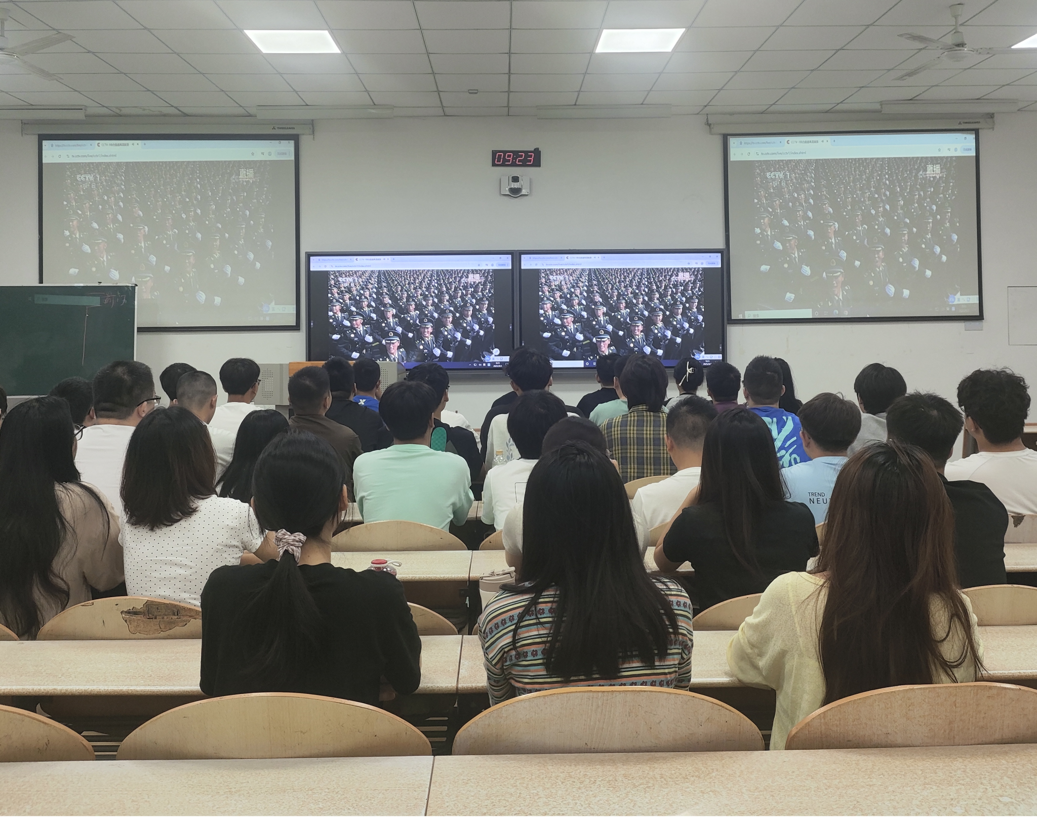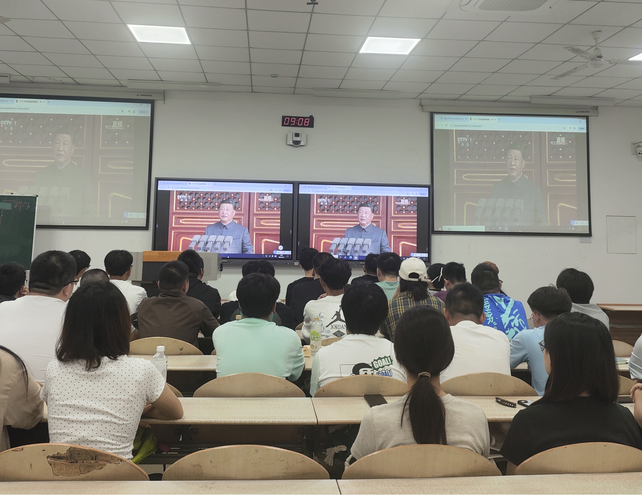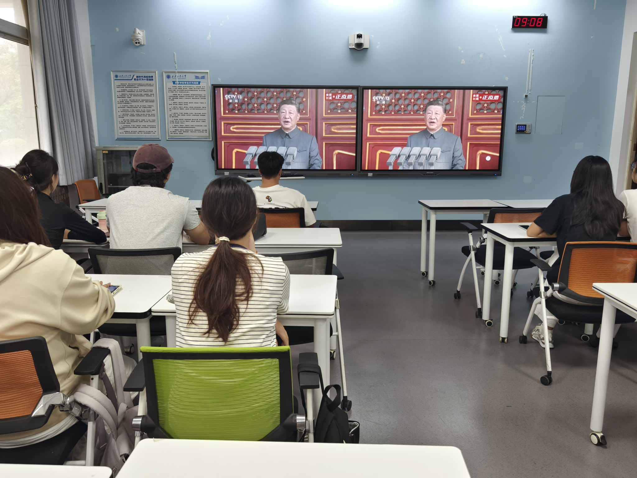 组织全体师生在会议室和教室认真聆听习近平总书记在纪念大会上的重要讲话,集中收看阅兵盛况直播,共同见证庄严神圣时刻。在铿锵步伐与国之重器的震撼中,全体师生共上一堂“行走的思政课”!