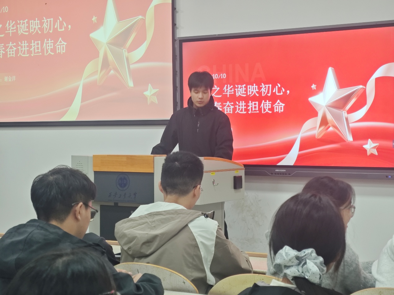 团委于2025年10月10日在教2-103开展“国之华诞映初心,青春奋进担使命”理论学习会。会议由学生干部谢金洋主讲,学院全体团委成员齐聚一堂,在理论学习与思想碰撞中筑牢爱国信念。