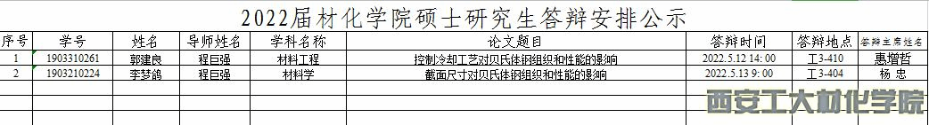 2022届材化学院硕士研究生答辩安排公示