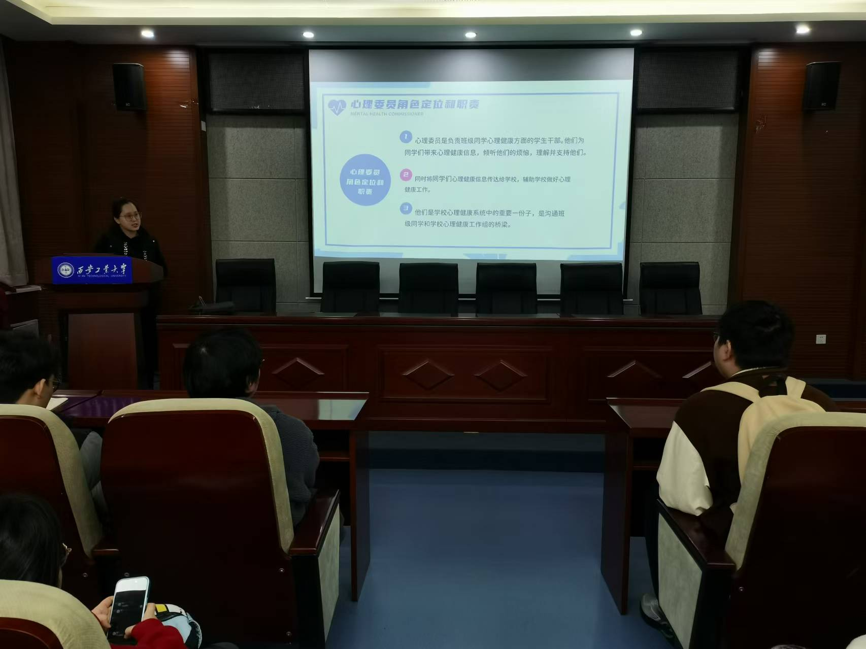 于11月25日在工四204会议室举办心理委员培训专题会议。本次会议由本科辅导员乔娜主讲,2024级研究生辅导员张启妍和全体心理委员参加。